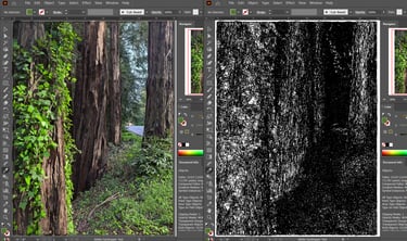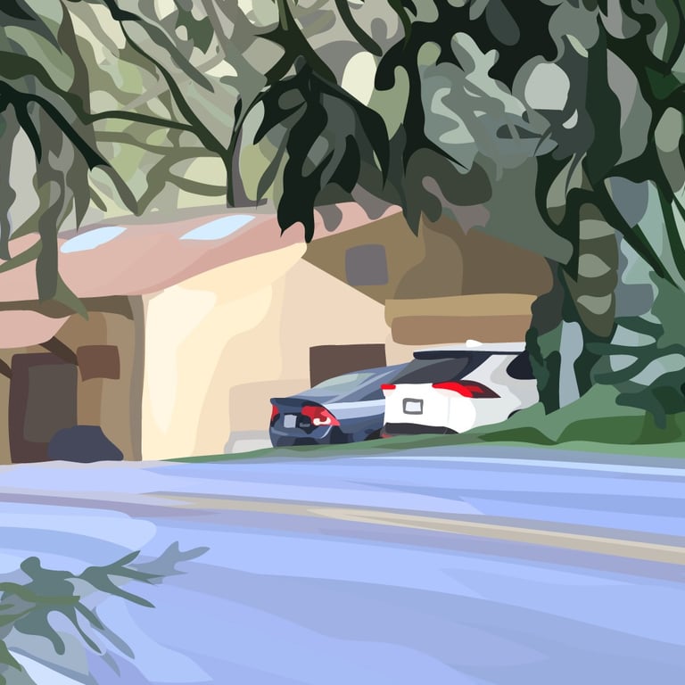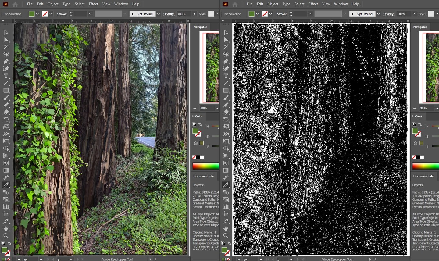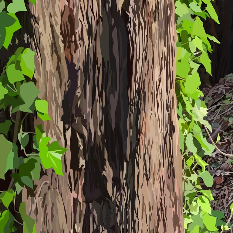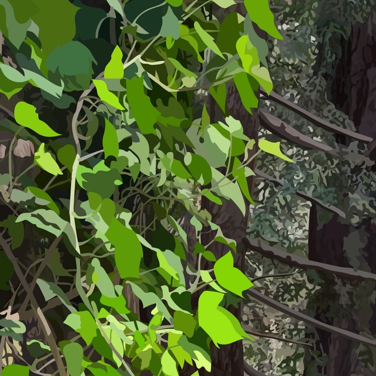 a hyperrealistic vector illustration of towering redwoods along the Pacific Coast Highway in Big Sur, California.
